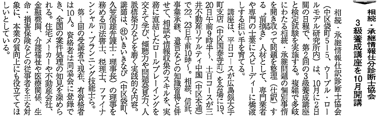 第3回 3級【相続・承継 情報仕訳診断士】の養成講座の日程が決定しました。